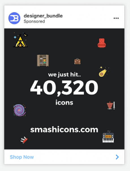 Do you have something special to celebrate? A milestone or a specific event that may attract more followers or customers? Share it through a simple Instagram ad like the following example from Designer Bundle.