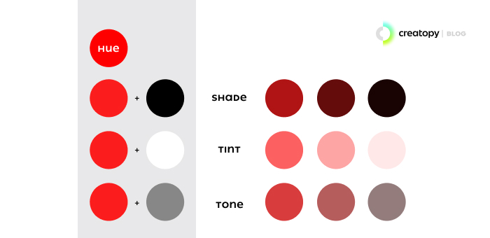 Once you step into the basic color theory and learn the color components, you’ll start mastering the color palette theory, too, with all the tints, shades, hues, and tones.