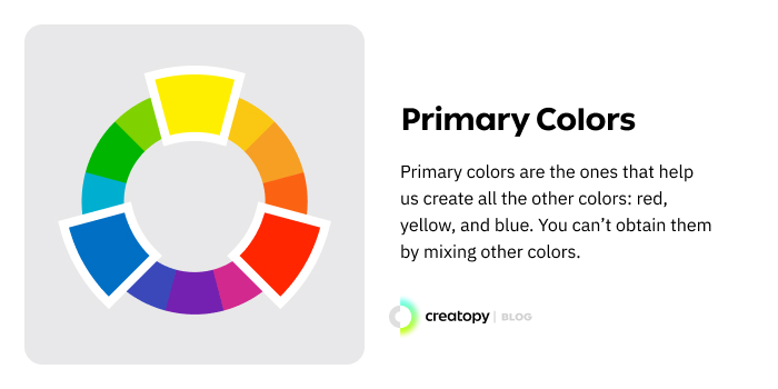 These are red, yellow, and blue, and you can’t obtain them by mixing other colors.