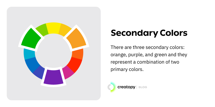 There are three secondary colors: orange, purple, and green. Here’s how you can create each of them: